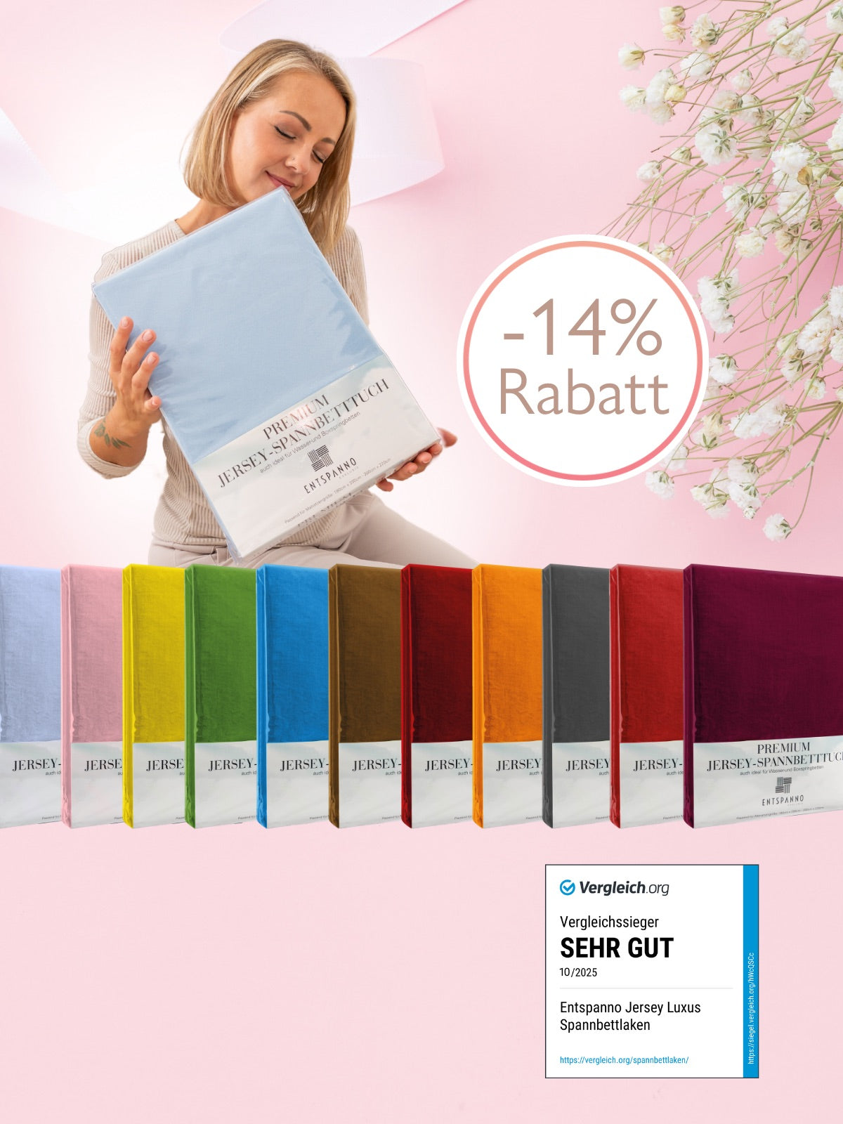 Besonders freut uns, dass ENTSPANNO Spannbettlaken bei unseren Kunden so beliebt sind, dass sie diese gleich morgens waschen, um sie noch am selben Tag wieder verwenden zu können.